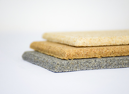 微粒材料是一種新型綠色裝飾材料,具備優(yōu)異的聲學性和物理性能。該材料是以天然砂?;蚪?jīng)環(huán)保處理的固廢顆粒為骨料,以環(huán)保膠凝劑,通過壓振工藝,生產(chǎn)的具有大量相互連通的微小空隙的多孔材料。